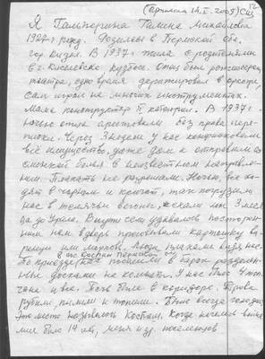 12. Воспоминания Гальпериной Галины Михайловны от 14.01.2009 г. (4 листа)