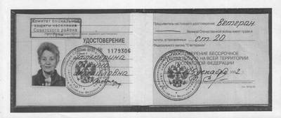10. Удостоверение ветерана Великой Отечественной войны, серия ВВ № 1179306, о праве на льготы, установленные ст.20 ФЗ "О ветеранах", выданное Гальпериной Галине Михайловне Комитетом социальной защиты населения Советского района гор. Тулы 25.12.2002 (1 лист)