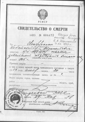 3. Свидетельство о смерти Иоаннесияна К.А. (1 лист)