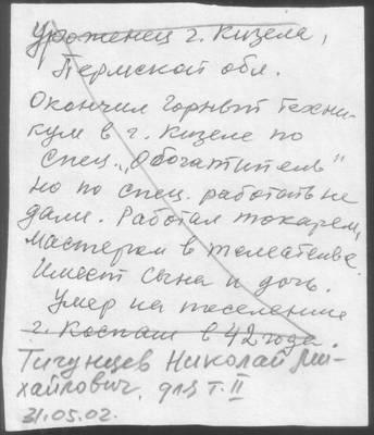 Тигунцев Михаил Михайлович, репрессированный