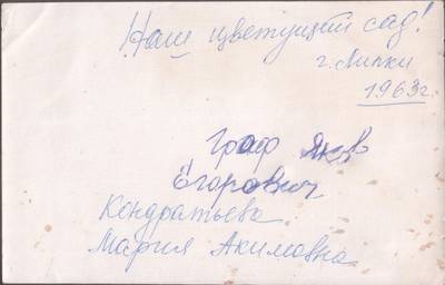 11. Фотография Граф Я.Е с женой Кондратьевой М.А. г. Липки. 1963 (3 листа)