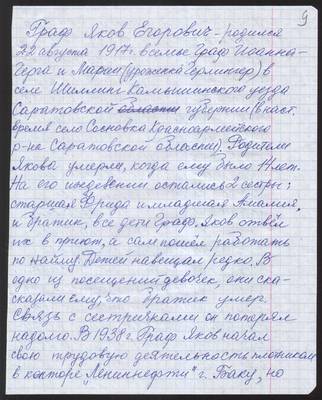 9. Воспоминания Костенко Э. Я. о жизни отца, Граф Е.Я. (4 листа)
