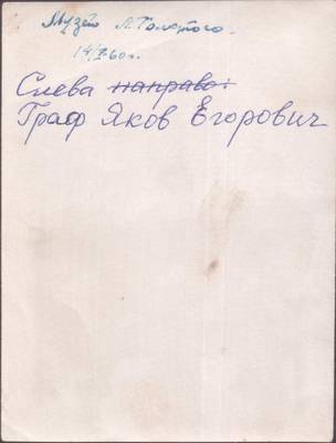12. Фотография. Граф Я.Е. в музее Толстого в Ясной Поляне. 1960 (2 листа)