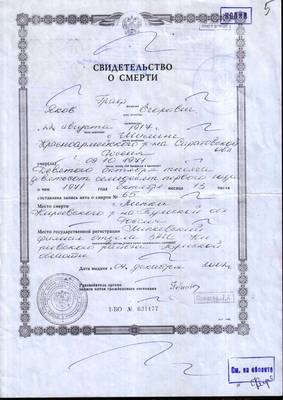 5. Свидетельство о смерти Граф Я.Е. (1 лист)