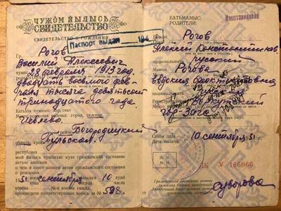 3. Копия свидетельства о рождении Рогова В.А., выданного в 1951 г.Воркутинским горЗАГСом (2 листа)