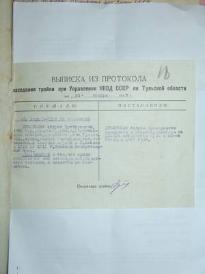 6. Выписка из протокола заседания Тройки при УНКВД по ТО от 25.12.1937. № 66 - Дело №-7199 по обвинению Дреничева А.П. (1 лист)