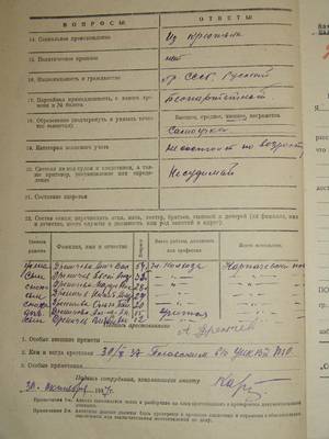 3. Анкета арестованного Дреничева А.П., составленная сотрудником Правского РО УНКВД ТО Каревым 30.10.1937