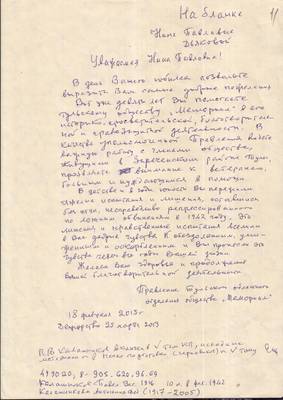 13. Черновик поздравительного адреса Дьяковой Н.П. к 75-летнему юбилею. 18.02.2013