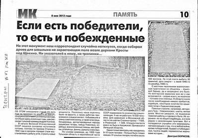 О мемориале в память о пленных венграх,погибших в период Великой Отечеств. войны на территории д. Кресты Щекинского р-на.