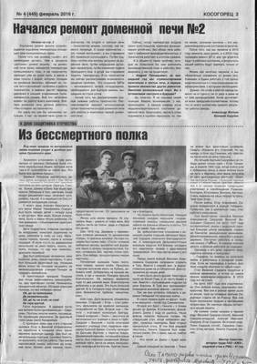 6. Виктор Савостин. Из бессмертного полка. - Косогорец №4(449). - 2016, февр. - с. 3 (2 листа)
