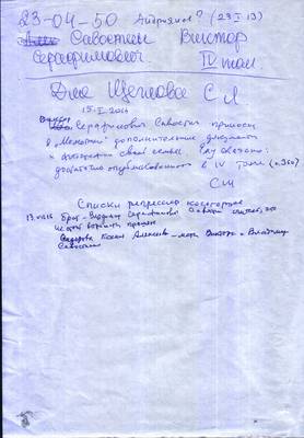 3. Описание случая избиения Никиты Реброва сыном репрессированного, записанного Савостиным и сведения о Зеленцовых. (2 листа)