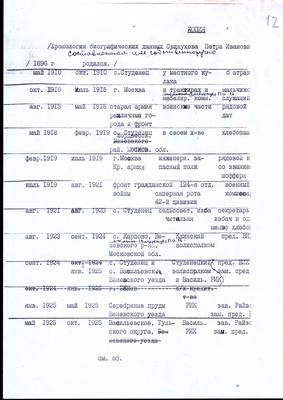 6. Хроника биографических данных Свинухова П.И., составленных им собственноручно в 1937 г. Копия 25.02.1985.
