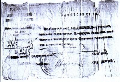 9. Мандат № 30 тов. Свинухова, делегата от Тульского округа на Первый (учредительный) съезд колхозов Московской обл. (2 листа)