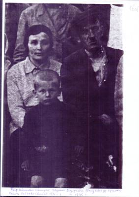 14. Семейное фото (1934 г.): Петр Иванович Свинухов, Евдокия Дмитриевна Свинухова (ур. Ершова) и Виктор Петрович Свинухоа (1930 г.р.)