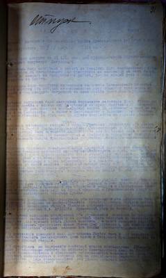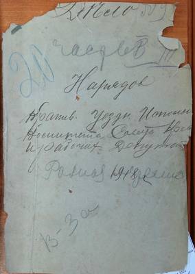 - 2/ Пo вопросу о том, как поступить с уездным податным инспектором СИМОНОВЫМ, который президиумом уездного совета официальною бумагою вызвался на 15 сего февраля на очень важным вопросам и служебным делам не явился, на 16 сего февраля с/г. составом совета он требовался в заседание и все таки опять не явился. Принимая во внимание, его прежние уклонение от всех приглашенийя в разные организации и управления уезда совет признает его явным уклонителем от работы не в пользу народа в исполнении своих обязанностей и не подчинение вновь организованной и управляемой уездной советской власти, а потому