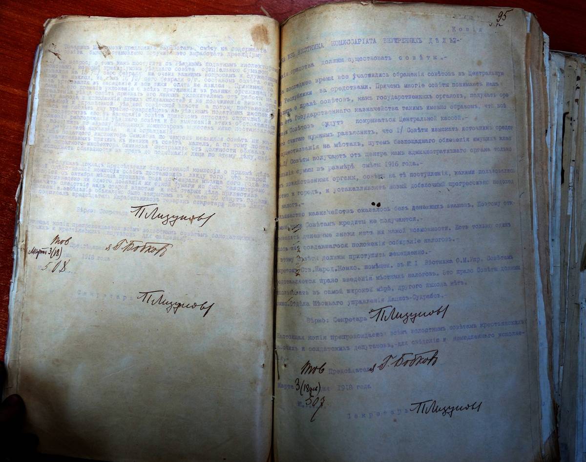ПОСТАНОВИЛИ: реквизировать дома Юдина и Залескаго предложить это на комиссара Красной гвардии. - О средствах на содержание советской власти, постановлено изменить раньше установленную систему по обложению Копиталистов как то Союзов торгово-промышленников и земельных собственников изменить на личности отдельных капиталистов и положить это на председателя финансовой секции Президиума. Лица отказывающиеся от уплаты налогов подвергать немедленно аресту при городской тюрьме.