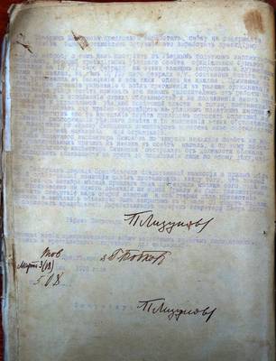 Настоящая копия протокола препроваждена во все волостные советы Крестьянских Депутатов для сведения и точного исполнения согласно <…> на Съезде резолюциям 1918 г. февраля 20 (7) дня за № 278