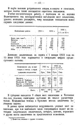 Движение заключенных за период с 1 января 1922 года по выражается в следующих цифрах 15 июня 1923 года среднесуточного состава: