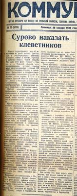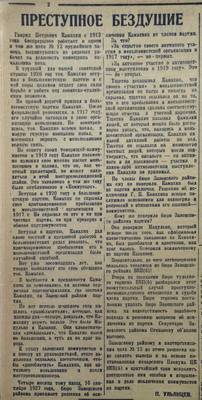 1. Преступное бездушие // П.Ульянцев. Коммунар, 1938.-28 янв. (О деле Камахина) (1 лист)