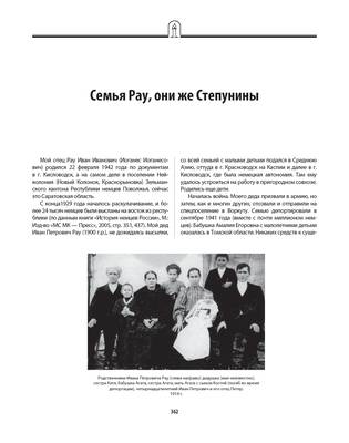 Текст рассказывает о судьбе семьи Рау (Степуниных), подвергшейся репрессиям и депортации в годы советской власти. Иван Иванович Рау, отец автора, родился в 1942 году в семье поволжских немцев, вынужденных бежать из родных мест во время раскулачивания. В годы войны семья была депортирована в Сибирь, а отец автора, будучи подростком, был мобилизован на тяжелые работы. После войны семья оказалась на спецпоселении, где отец женился, и в 1947 году родился автор. В послевоенные годы семья столкнулась с трудностями, включая смену фамилии из-за страха преследований. Текст отражает историю борьбы за выживание, реабилитацию и восстановление справедливости в отношении семьи, пострадавшей от репрессий.