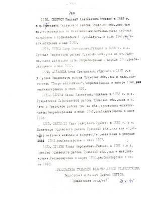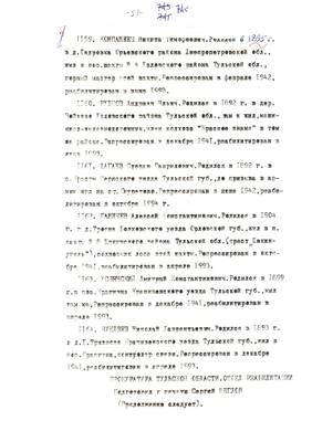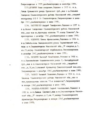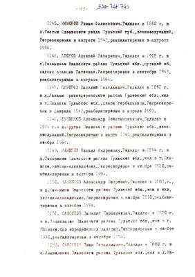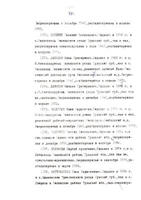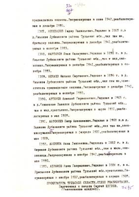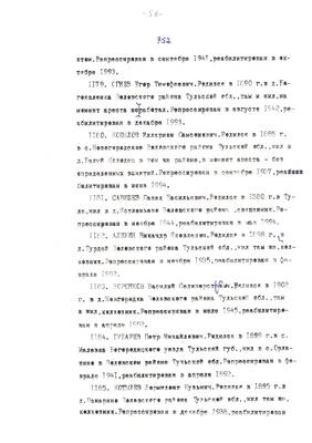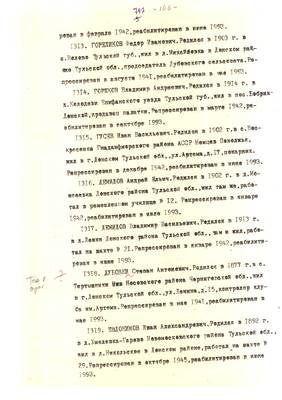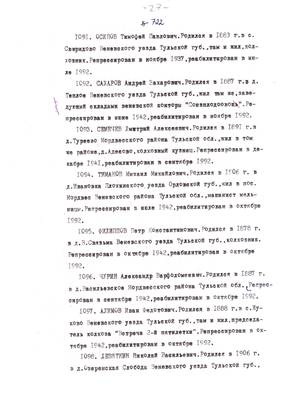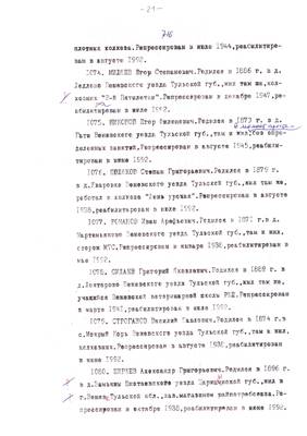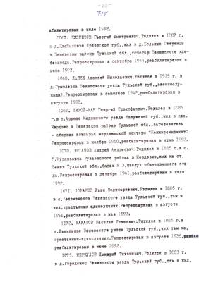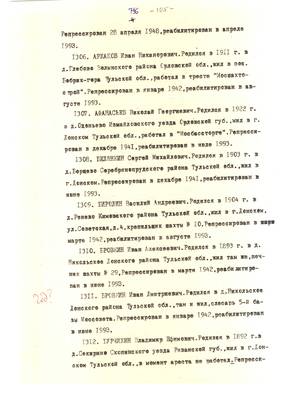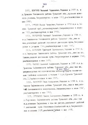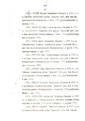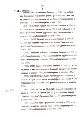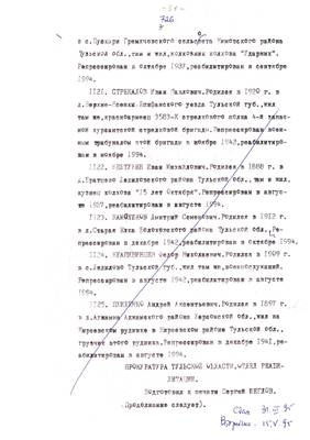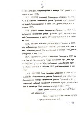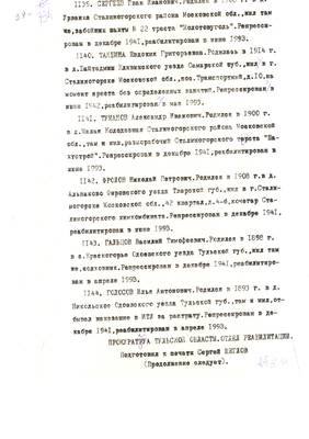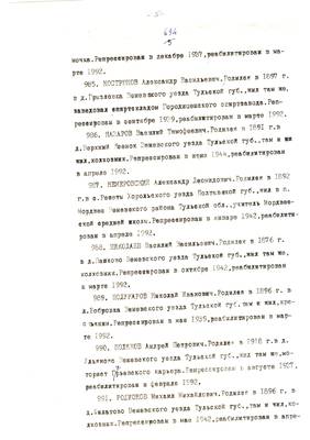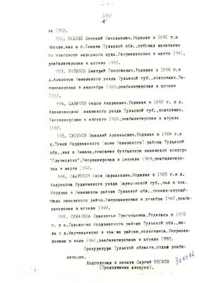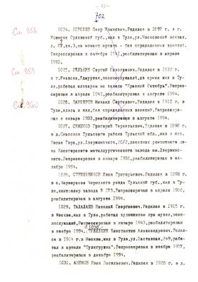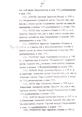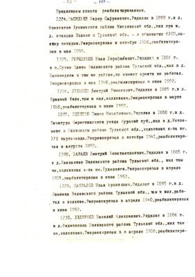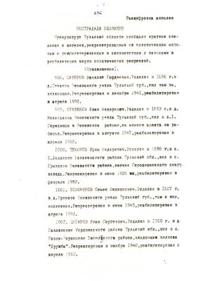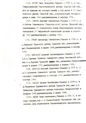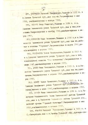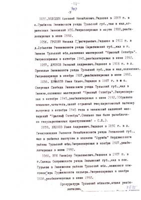 4. Пострадали безвинно. Списки репрессированных с N 998 - 1015 // Публикации (машинопись) С. Щеглова для газеты Тульские известия. 17.01.1995. (3 листа)