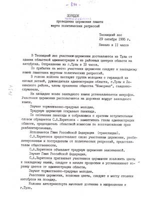 57. Порядок проведения церемонии памяти жертв политических репрессий в Тесницком лесу 29.10.1995