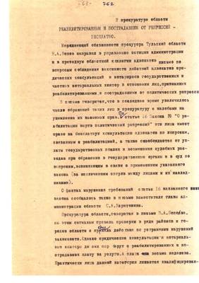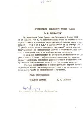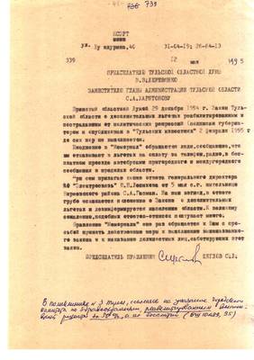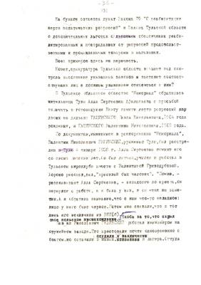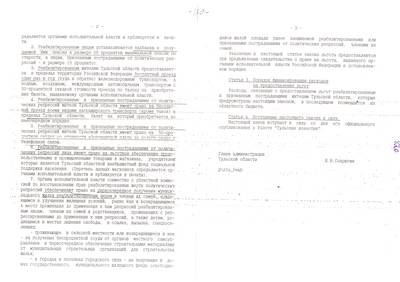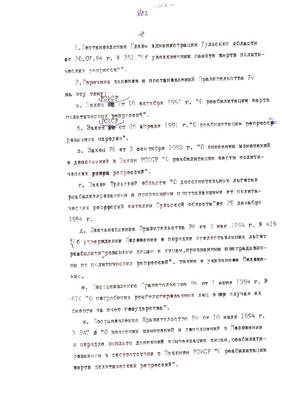 43. Закон о реабилитации: как он выполняется? (В прокуратуре области). Материал для Тульских извести (машинопись (13.09.95) (4 листа)