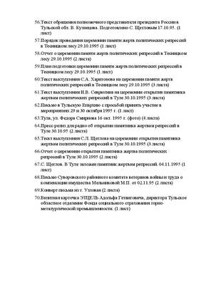 65. Тескт выступления С.Л. Щеглова на церемонии открытия памятника жертвам политических репрессий в Туле 30.10.1995 (3 листа)