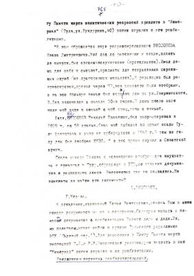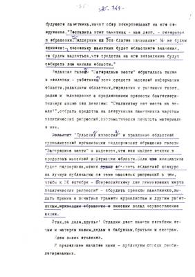 45. З. Носкова. Реанимация памяти необходима (о благотворительной акции по сбору средств на памятник). Материал для Тульских извести (машинопись (07.09.95) (6 листов)