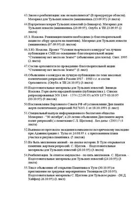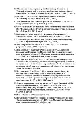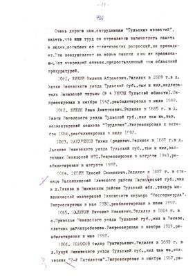 42. По туго натянутой струне (отзывы и мнения о публикациях списков). Списки реабилитированных №№ 1351-1363. Материал для Тульских извести (машинопись (07.09.95) (6 листов)
