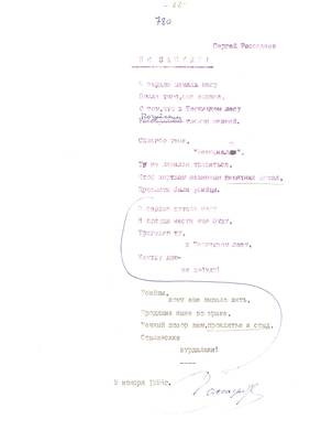 27. Сергей Рассаднев. НЕ ЗАБУДУ! 09.11.1994 (с автографом автора) (1 лист)