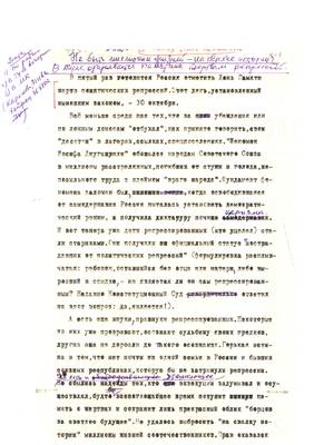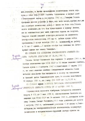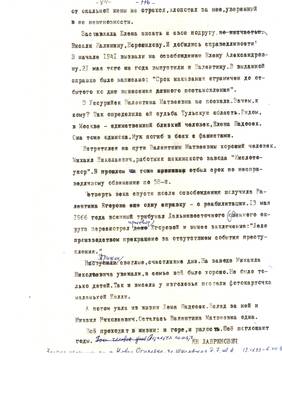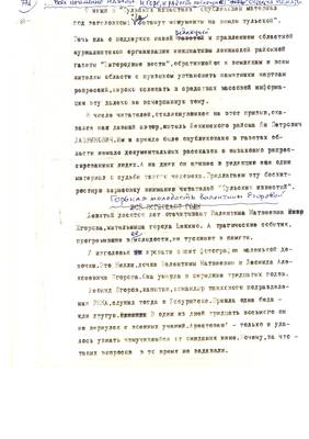26. И гора и радость поглощает время, остается память. Горькая память Валентины Егоровой (очерк Лавриновича). Cписки реабилитированных №№ 1224-1244 (13.07.95) - Публикация для Тульских извести (машинопись) (6 листов)