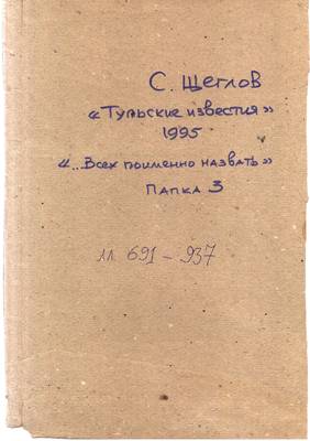 6. Щеглов С. Папка No 3 (лл. 691-937) - 1995 г.