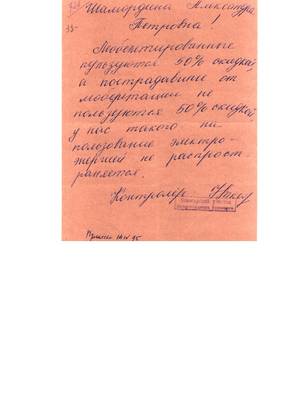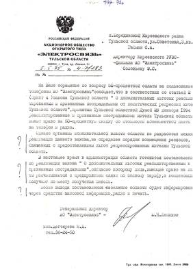 14. Письмо директора АО "Электросвязь" Лепихова Ю.Н. о льготах для репрессированных за пользование телефона. 05.05.95