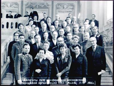 15. Групповой снимок делегатов XVIII конференции Московской городской организации КПСС. Москва, март 1966 г. Свинухов Ю.П на снимке обозначен галочкой.