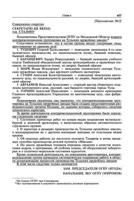 Полномочным Представительством ОГПУ Московской области вскрыта и ликвидирована на Тульских оружейных заводах к.-р. группа, занимавшаяся шпионской деятельностью по заданиям чехословацких разведывательных органов и чехословацкой фирмы «Шкода».